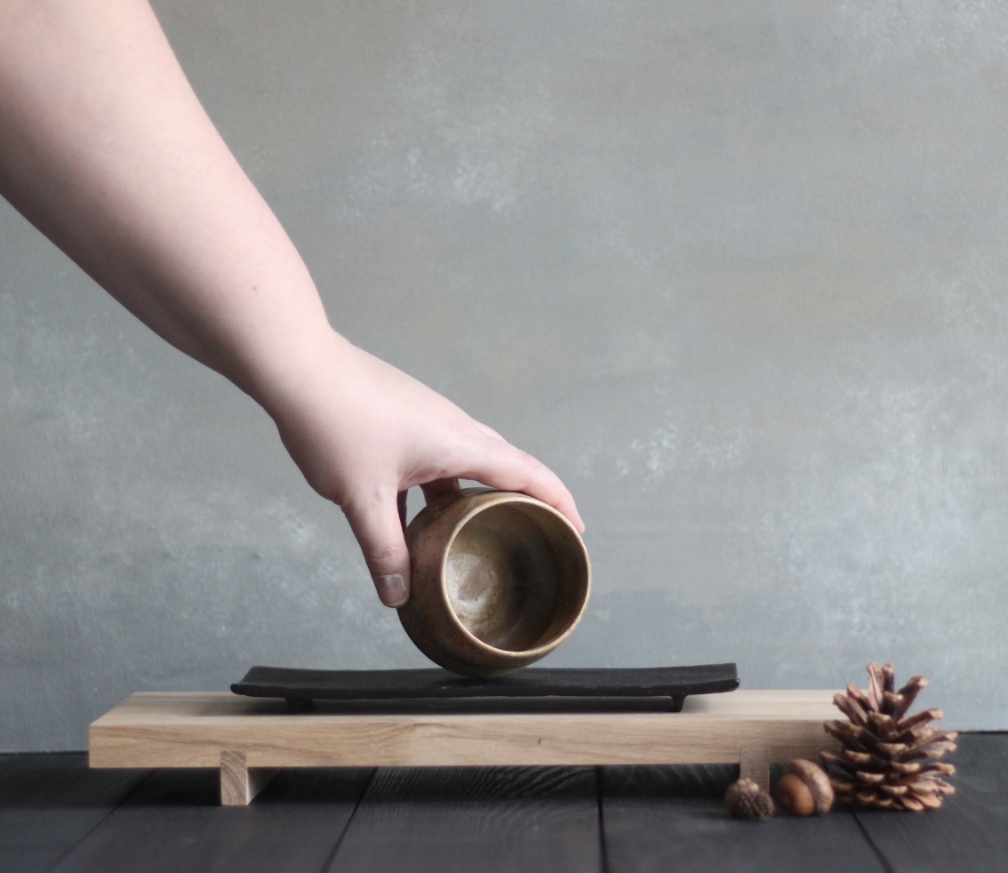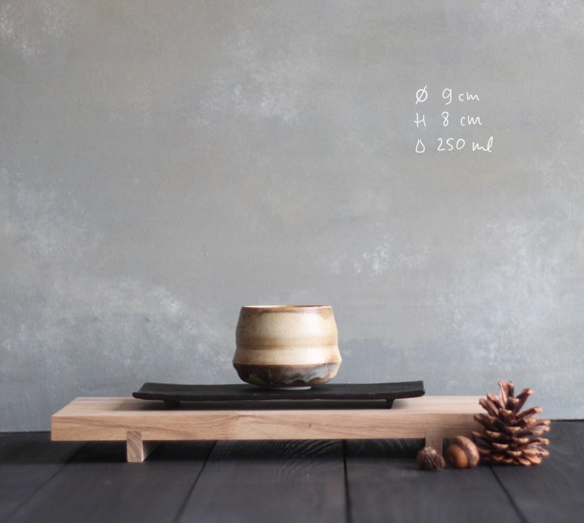 This mug is made out of a selfmade clay and is glazed with stonelike glazes.