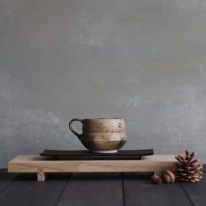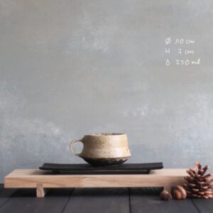 This cup is made out of a selfmade clay and is glazed with stonelike glazes.