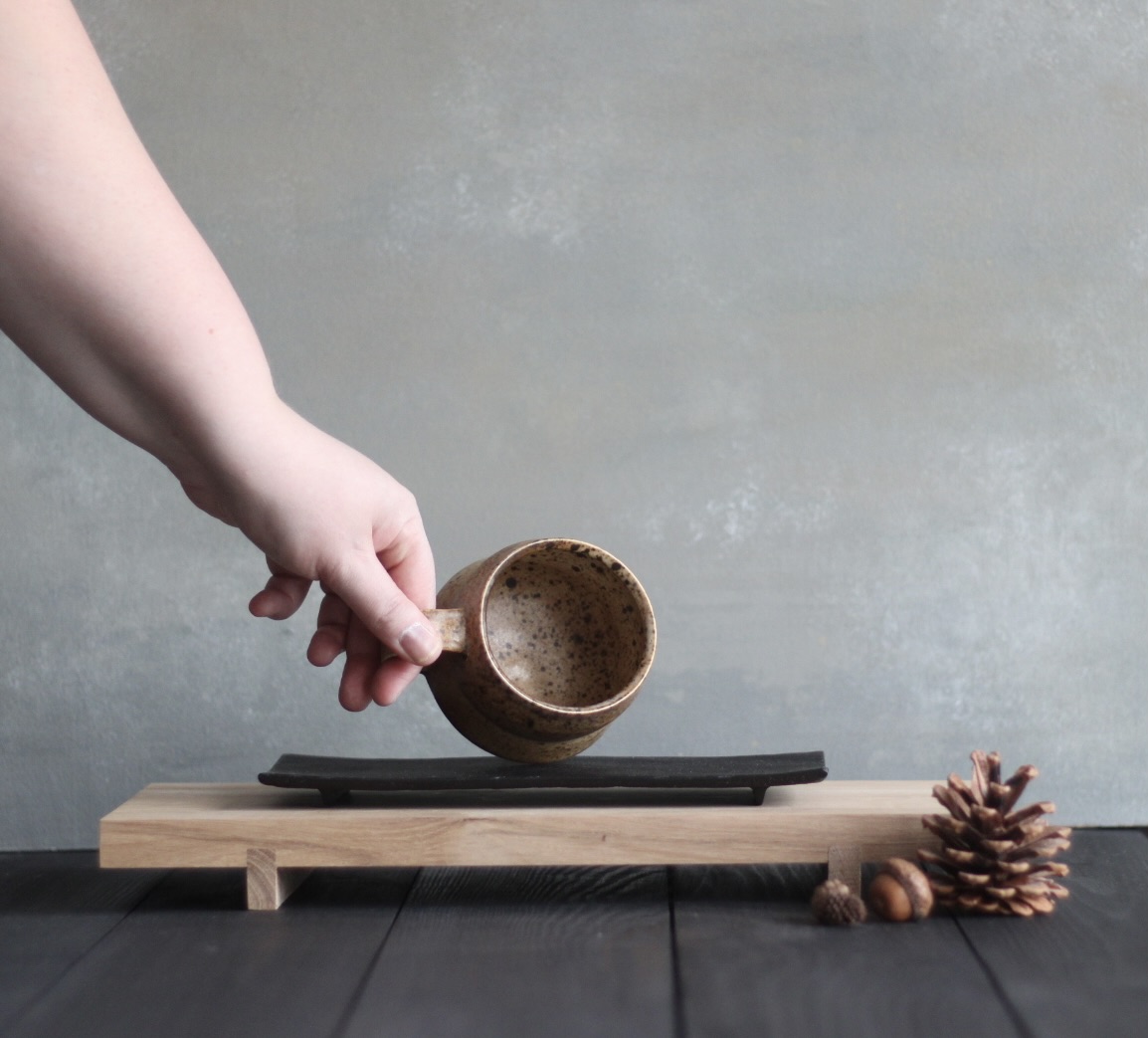 This mug is made out of a selfmade clay and is glazed with stonelike glazes.