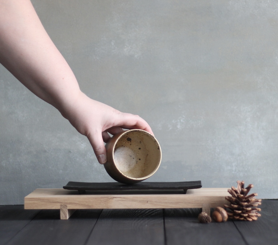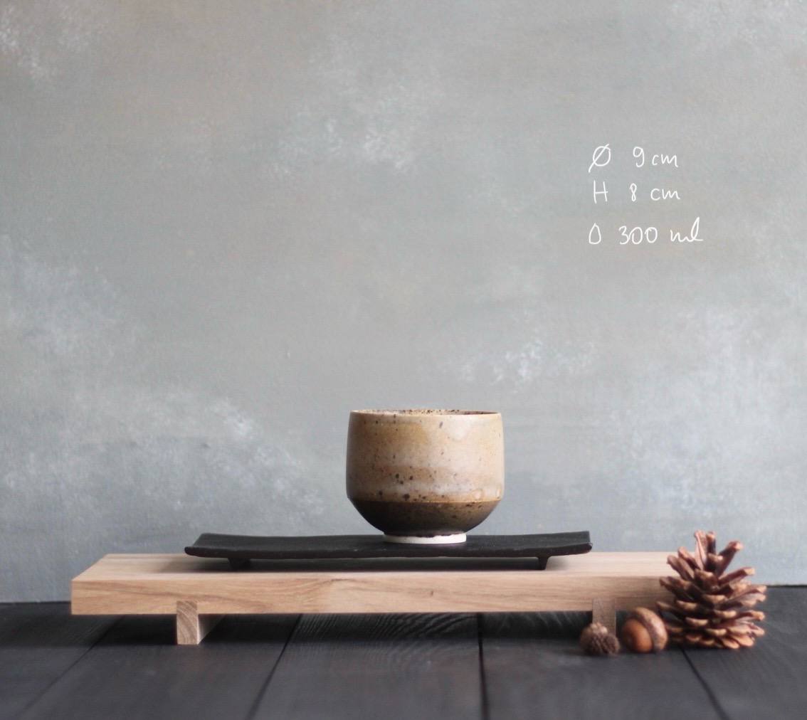 This mug is made out of a selfmade clay and is glazed with stonelike glazes.